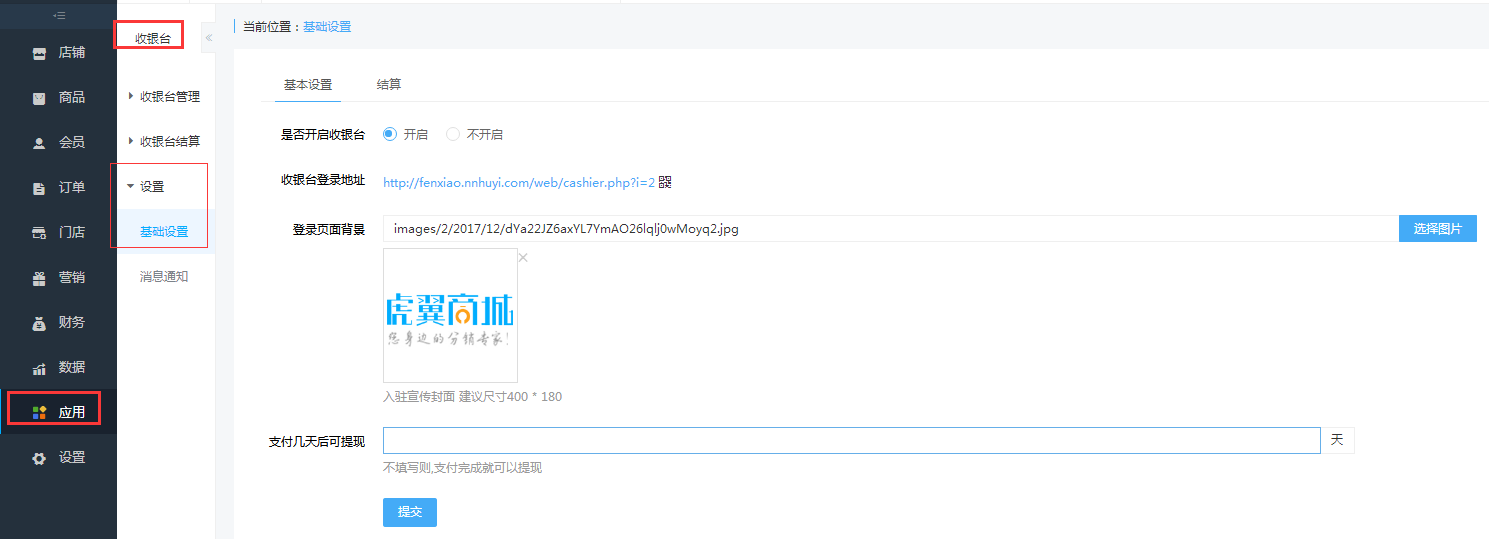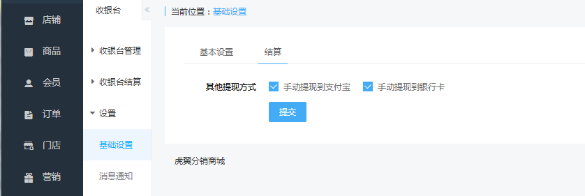 点击【虎翼分销收银台】——【基础设置】——【基本设置】,参见下图: